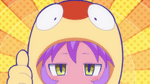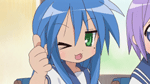 ちゆの感覚では、ネット以外で「グッジョブ」を見る機会が特に増えたのは2007年ごろ(?)かなと思います。 印象深いのは「らき☆すた」(最速で2007年4月22日放送)ですが、近い時期にも、「アイマスXENOGLOSSIA」(最速で2007年4月23日深夜放送)や「ひだまりスケッチ」(2007年2月22日深夜放送)に登場。アニメ以外でも、「エム×ゼロ」(2007年1月6日発売のジャンプに掲載)などに見られます。