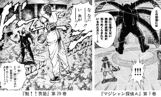 漫画でマジックを扱うのは難しいです。 トランプで敵を切り刻んだり燃やしたりする『魁!!男塾』の男爵ディーノのように、手品というか殺人奥義を繰り出すだけなら大丈夫ですが、本格路線のマジック漫画を目指すと、いわゆる「タネあかし問題」に突き当たります。 たとえば、少年ガンガンの「マジック・マスター」は、啓蒙のためのタネ明かしは必要という立場のマジシャンを監修に据え、漫画の中で本格的な手品のタネを紹介しましたが、反対の立場の人たちがこれに反発。 大阪奇術愛好会の方は、「マジック・マスター」のトレーディングカードについて次のように述べました。